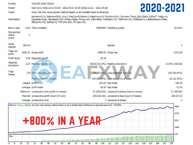 - ✅ ECN broker environment; results derived from 90% modeling quality Strategy Tester on XAUUSD D1.