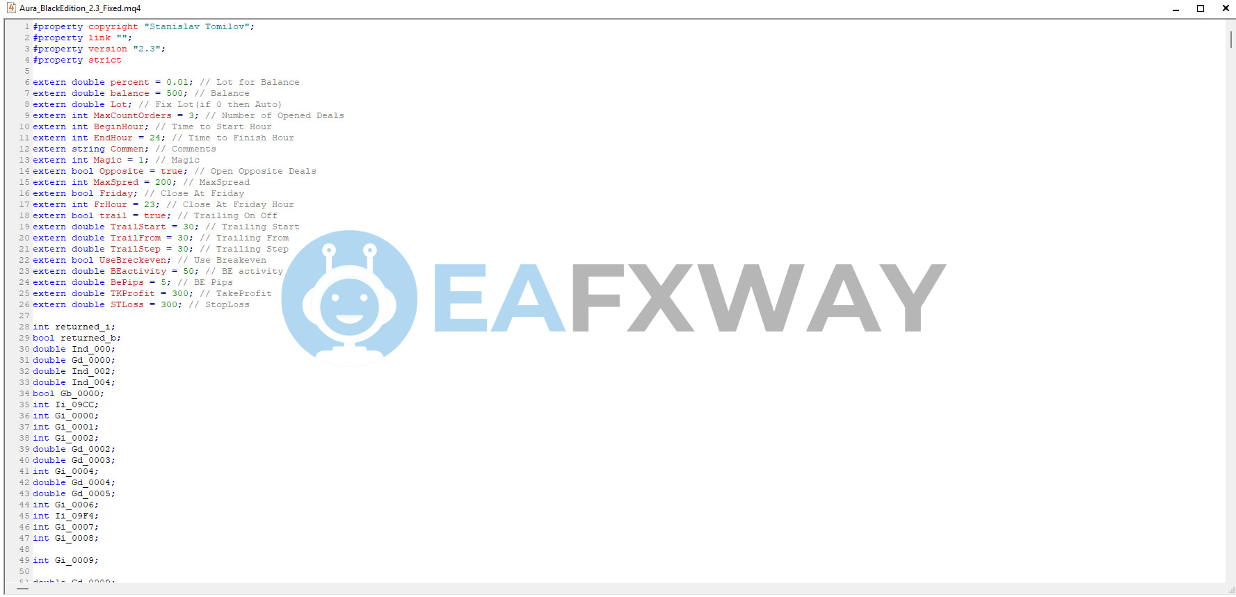 - ✅ Expert: Aura Black Edition EA source file (.mq4 — compiles to .ex4 in MT4)