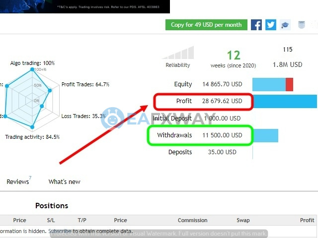 - Live account: $1,000 initial deposit, 64.7% win rate, $28,679.62 net profit