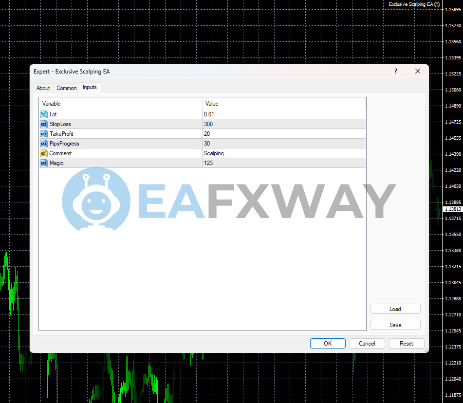 Signal Trigger: Entry conditions are not publicly documented in available parameters. The six configurable inputs (Lot, StopLoss, TakeProfit, PipsProgress, Comment, Magic) govern trade management rather than entry logic — entry is handled internally by the EA’s compiled code.