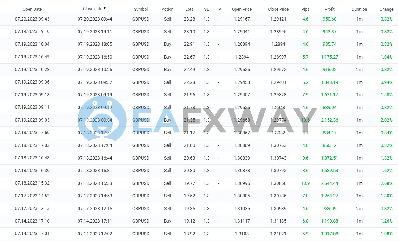 | GBPUSD Avg Trade Duration | 0.5 sec – 4.17 min |