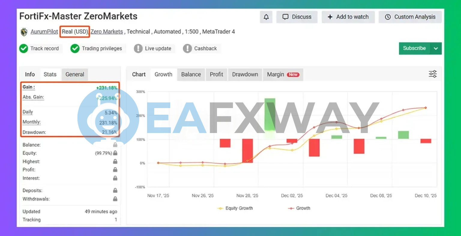 FortiFX Master EA — Multi-Account MT4 Grid with 3.11% Drawdown on Live Real Account