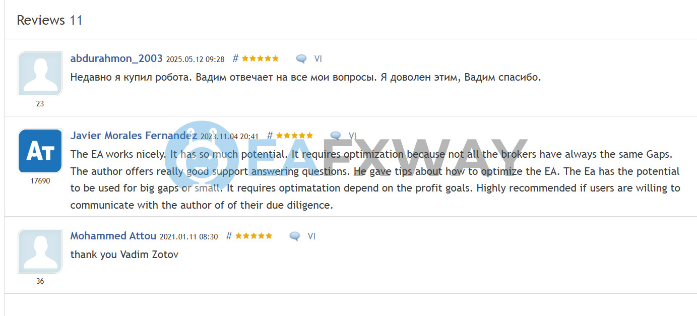 Developed by Vadim Zotov, an MQL5 marketplace author with active post-sale support documented across multiple buyer reviews.