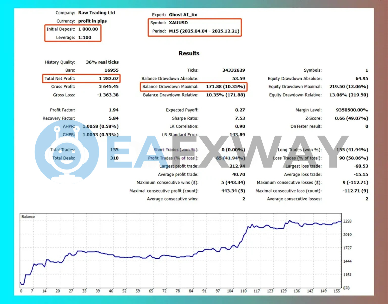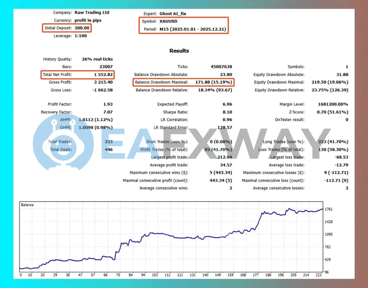 Ghost AI EA — XAUUSD M15 Trend-Following with 1.93 Profit Factor