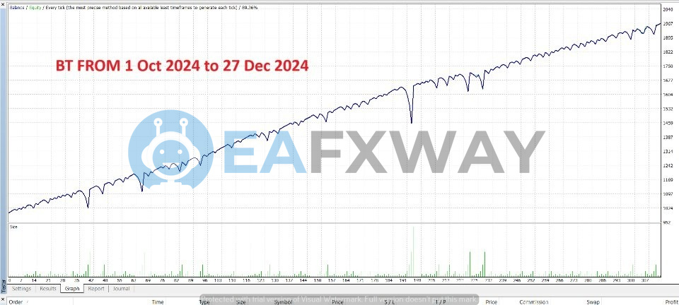 A backtest from 1 October 2024 to 27 December 2024 on $1,000 starting capital produced $966.61 net profit — approximately 97% gain in under three months.