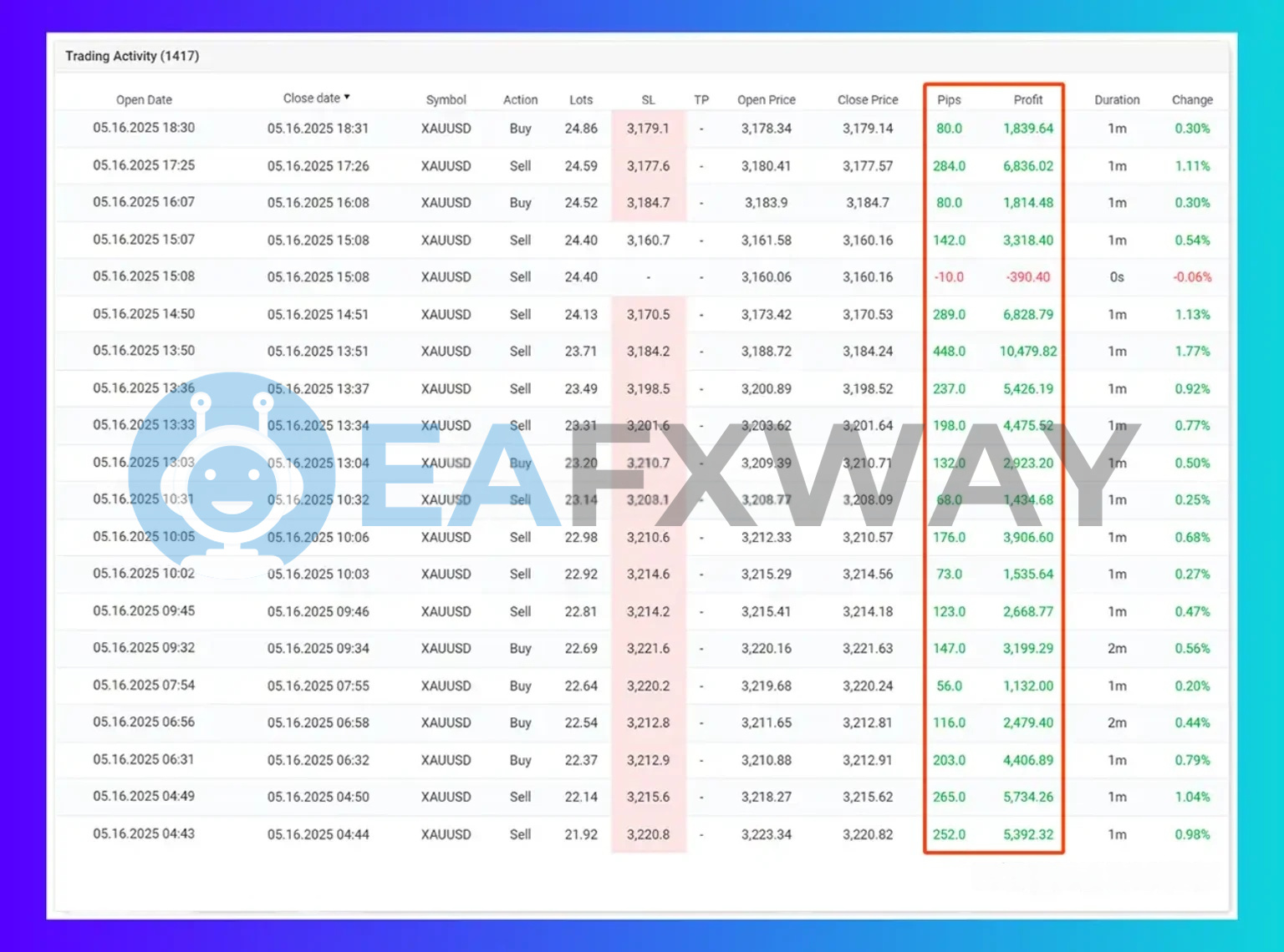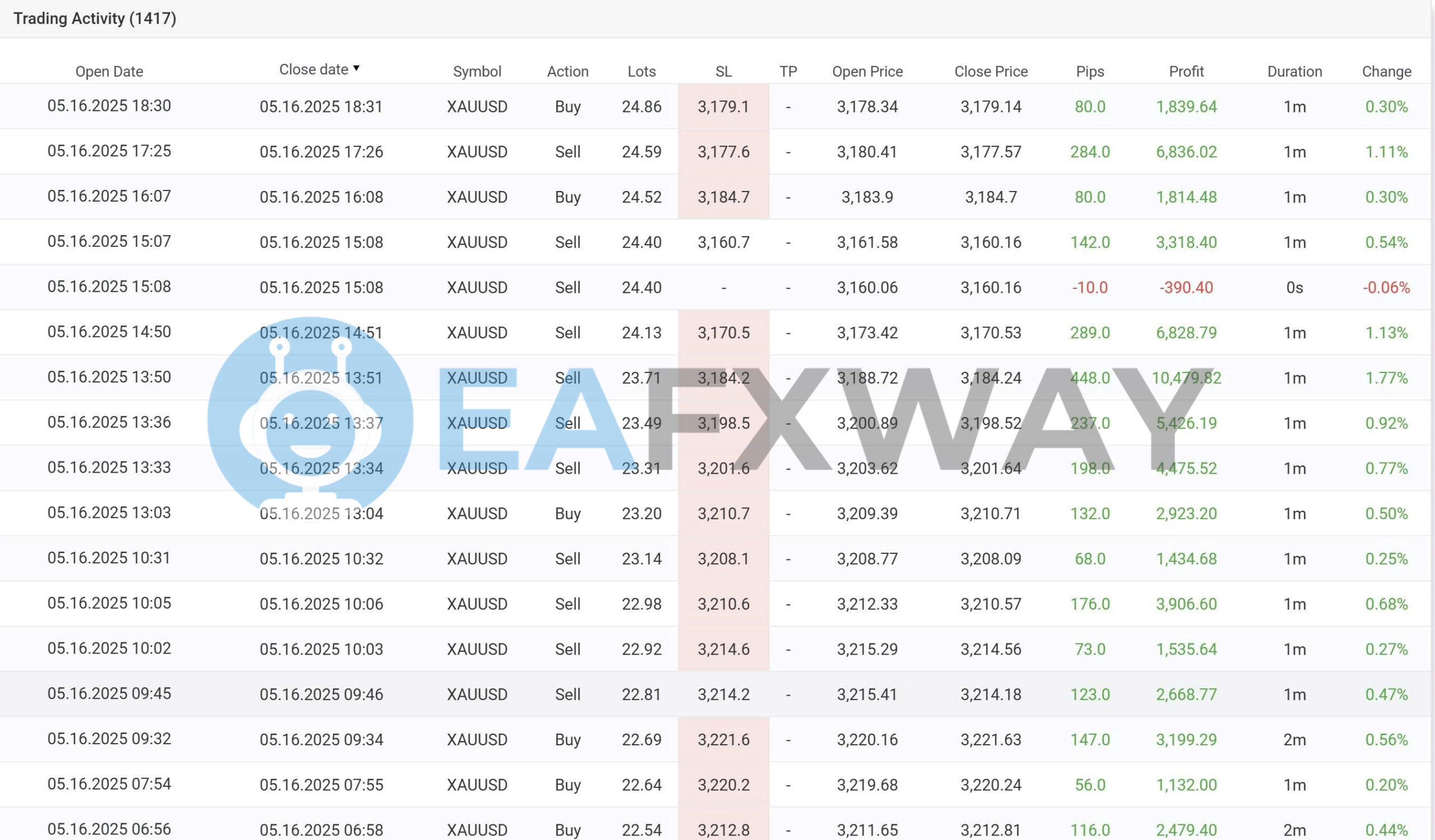 - ✅ Lot Scaling: Average trade size of ~23 lots on XAUUSD generates high nominal profit — requires a well-capitalised account; undercapitalisation creates margin risk at these sizes. Compare EA strategies