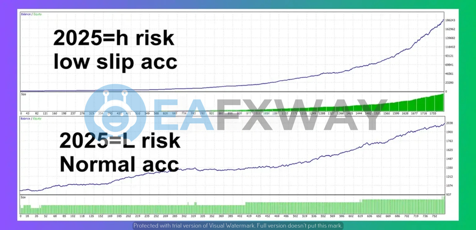 - ✅ Controlled Drawdown: Live account records 9.5%–19.2% peak DD across low and standard risk settings.