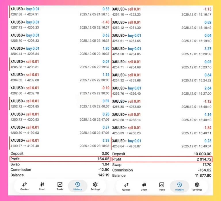 - ✅ XAUUSD Scalping: Developer-claimed preliminary gains within tight 5–8 pip price ranges on gold.