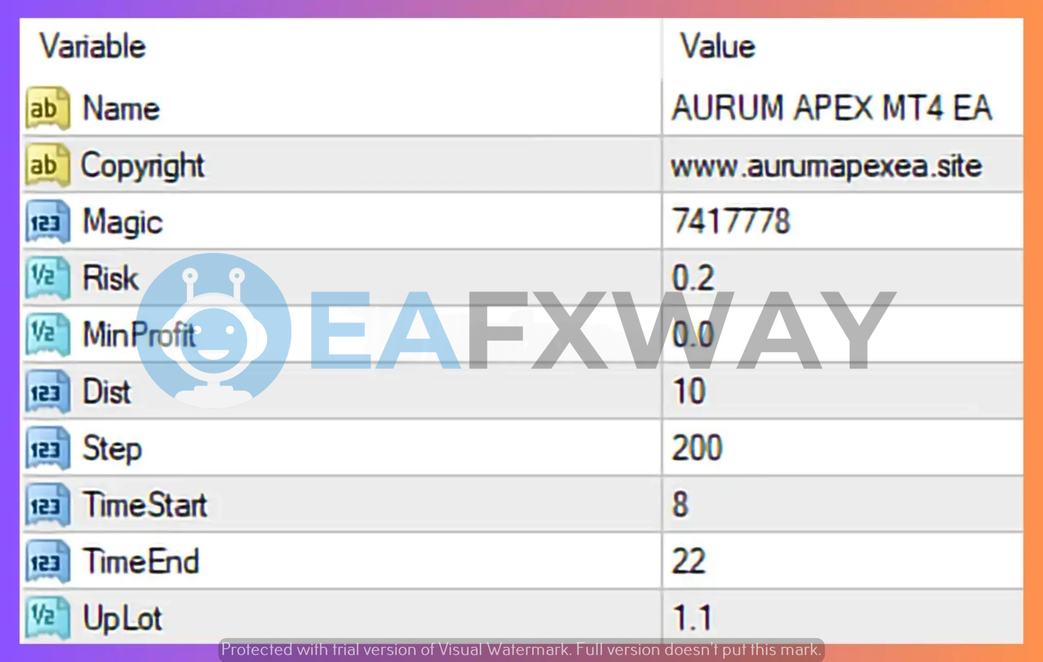 Kyle Apex EA (AURUM APEX MT4 EA) is an automated MetaTrader 5 system trading on a USC cent account, using a time-filtered grid approach on AUDUSD within defined session hours.