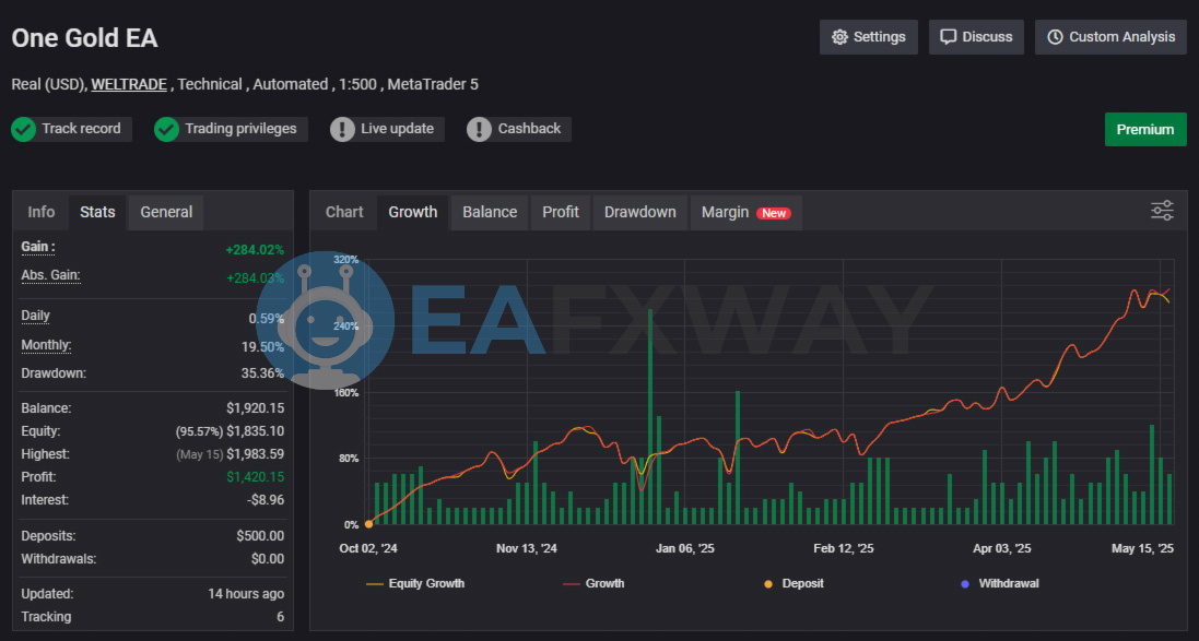 - ✅ Verified Live Results: MyFxBook-tracked account shows +284% gain over 7 months.