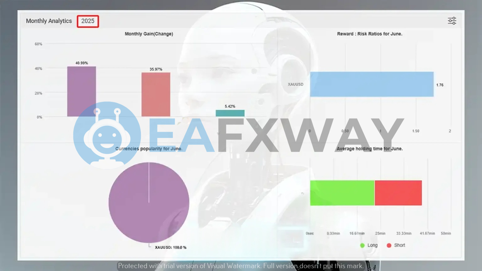 - Exposure Limits: Single-instrument focus (XAUUSD only); reward:risk ratio of 1.76 maintained across June 2025 sample.