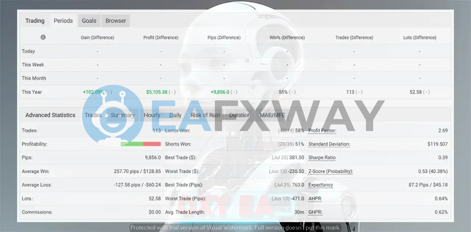 - ✅ Verified Live Gain: MyFxBook-tracked +102.11% return on real USD account since June 2025.