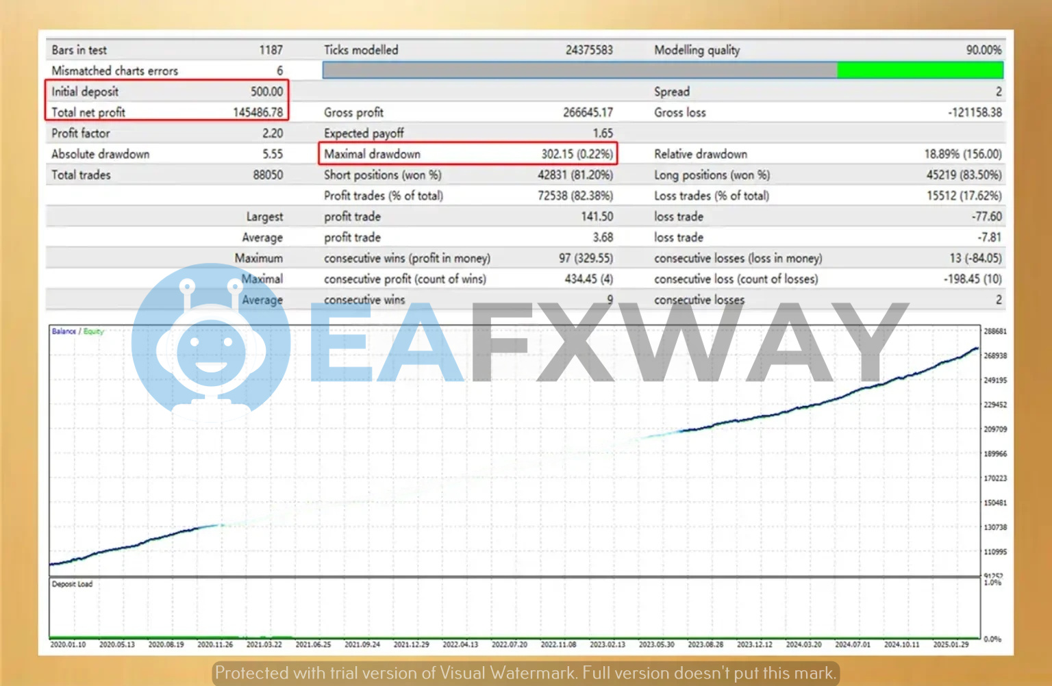 - ✅ Risk-Adjusted Return: Sharpe Ratio benchmarks at 11.47 — exceptionally high for a Gold EA.