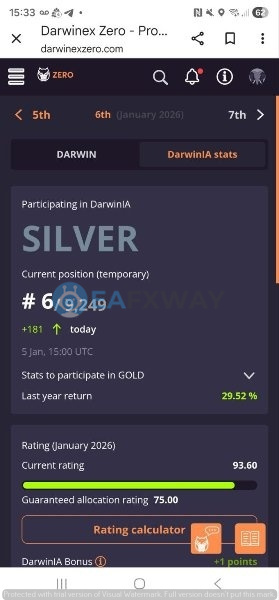 - ✅ DarwinIA Ranked: Achieved Silver tier with a 93.60 rating, above the 75.00 guaranteed allocation threshold.