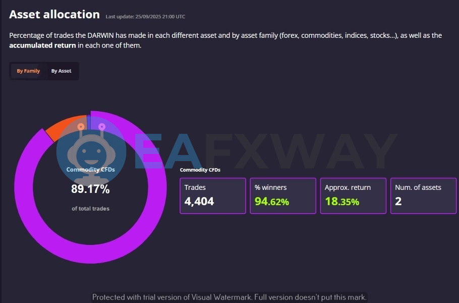 - Mechanism: Commodity CFD mean-reversion and momentum strategy targeting 2 primary assets; MT4 execution; 89.17% trade concentration in commodity CFDs.