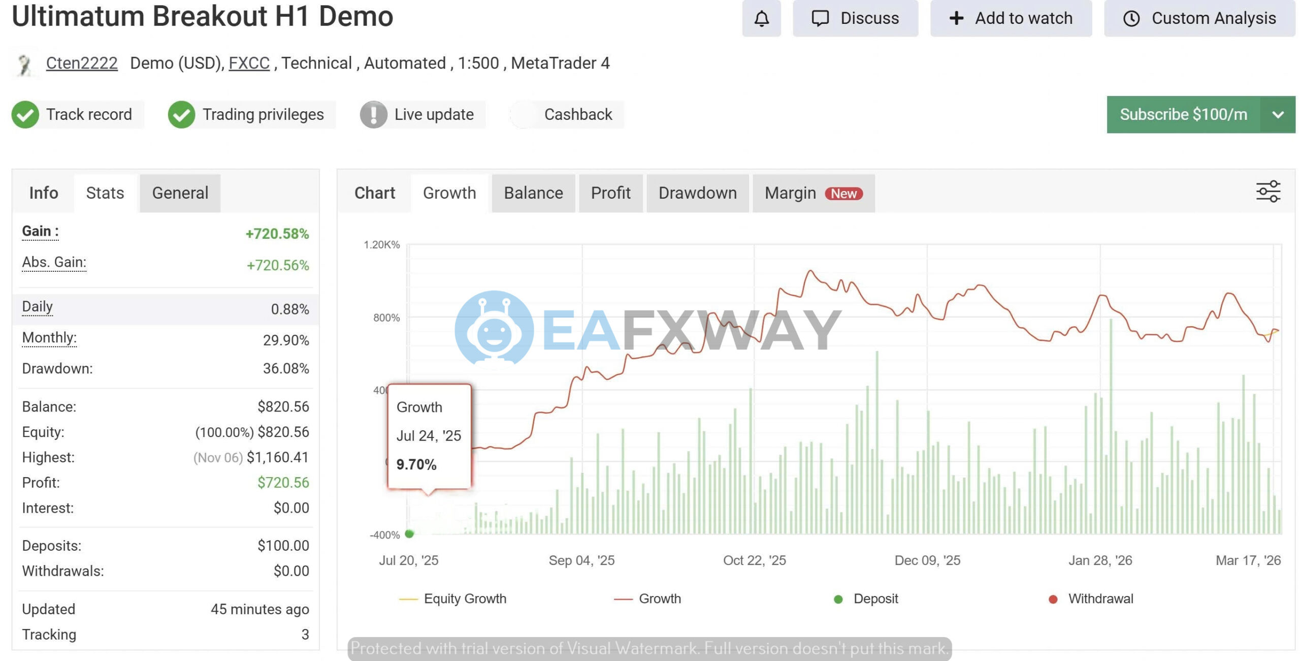 Ultimatum Breakout EA — H1 Breakout Automation, 45-Second Avg Trade, Demo-Only Verified