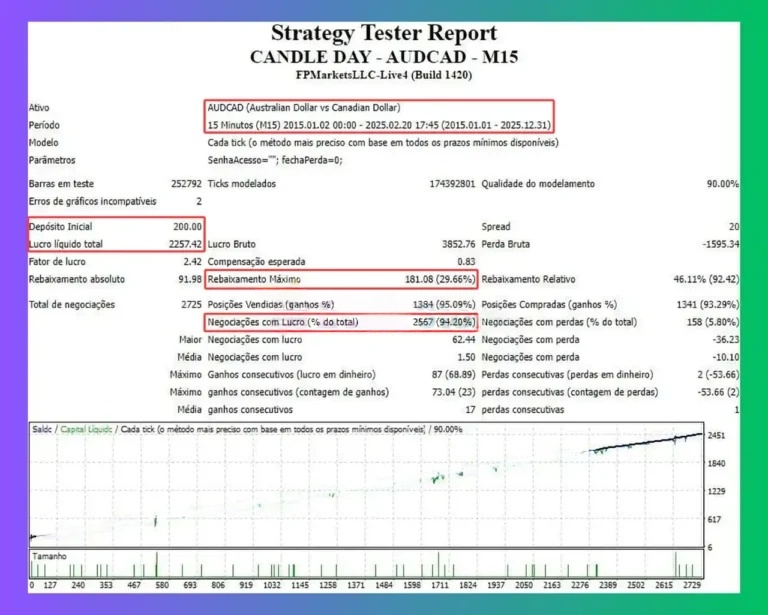 - ✅ Long-Range Testing: Strategy mapped across 2015–2025, capturing multiple AUDCAD volatility cycles.