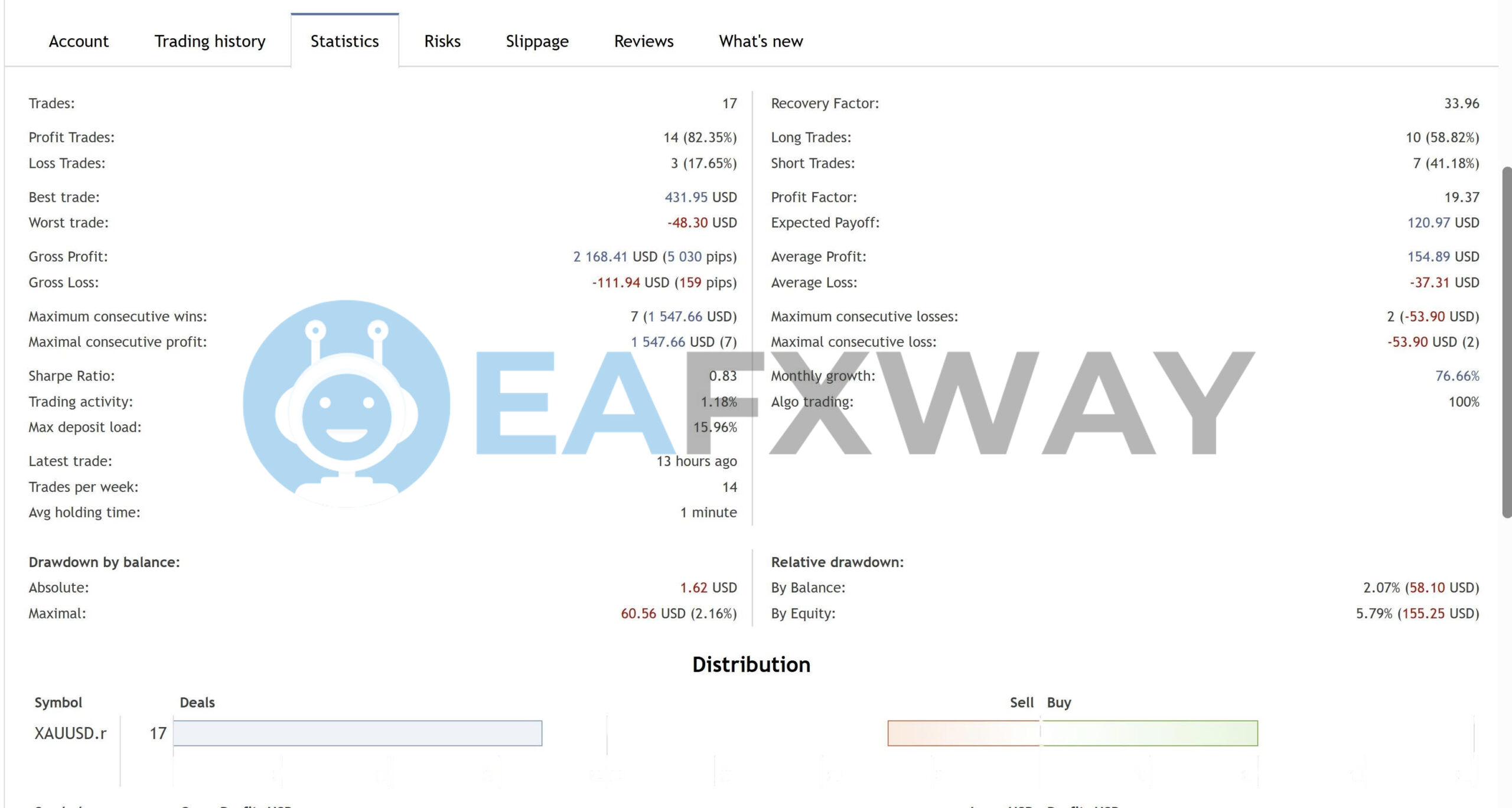 - ✅ Gold-Only Focus: Designed exclusively for XAUUSD on M5/M15 — not a multi-pair generalist diluted across instruments. Narrow scope means every filter is tuned to gold’s specific volatility structure, not averaged across pairs.