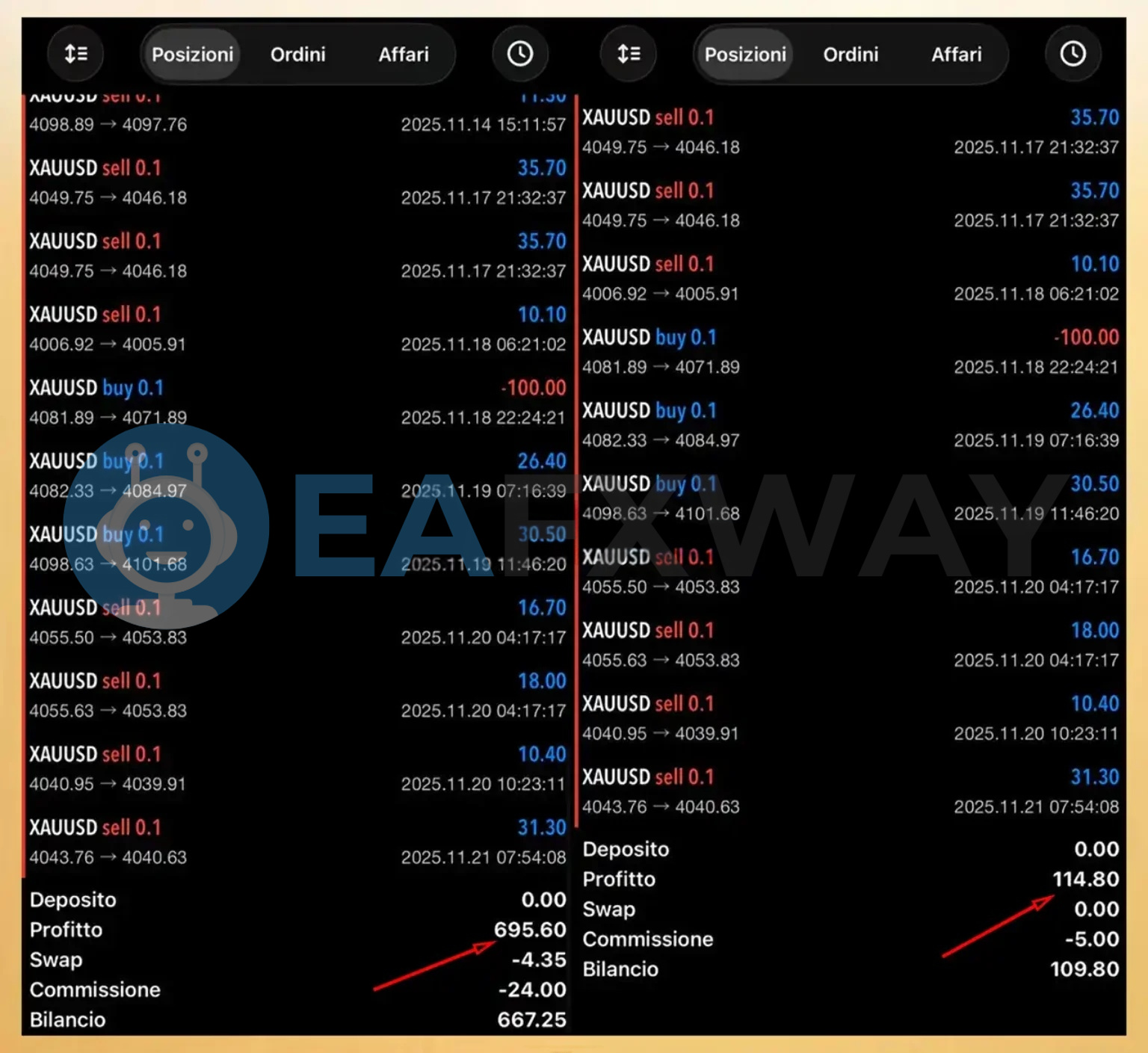 - ✅ No Martingale, No Grid: Every trade carries a real fixed SL and TP with trailing stop management. Risk per trade does not compound on losses. Compare EA risk structures
